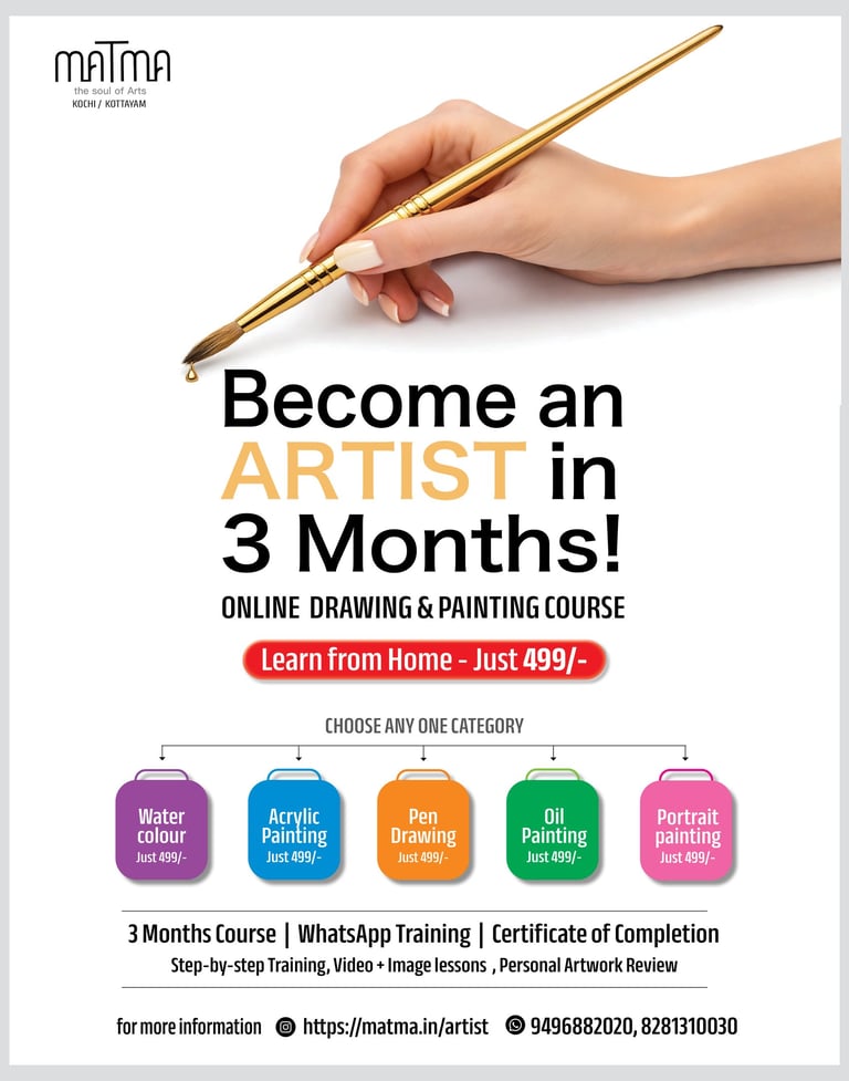 ചിത്രകലാ മേഖലയിലേക്ക് പുതുതായി കടന്നു വരുന്നവർക്കും, നിലവിലുള്ള കഴിവുകൾ കൂടുതൽ മെച്ചപ്പെടുത്താൻ ആഗ്രഹിക്കുന്നവർക്കും വേണ്ടി രൂപകൽപ്പന ചെയ്ത പ്രത്യേക പരിശീലന കോഴ്സ്.