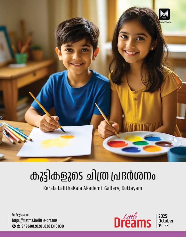 മാറ്റ്മ ആർട്ട് കളക്റ്റീവ് സംഘടിപ്പിക്കുന്ന 17 വയസിൽ താഴെയുള്ള കുട്ടികളുടെ ചിത്ര പ്രദർശനം ഒക്ടോബർ 19 മുതൽ 23 വരെ അഞ്ചു ദിവസത്തേക്ക് കേരളാ ലളിതകലാ അക്കാദമിയുടെ കോട്ടയം ആർട്ട് ഗ്യാലറിയിൽ നടത്തുന്നു.